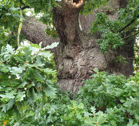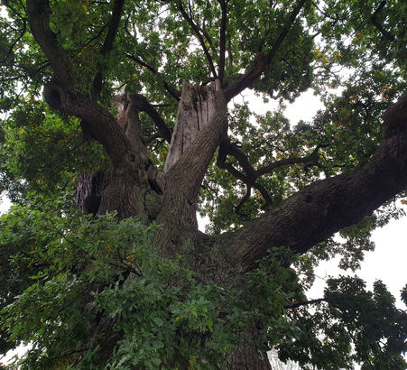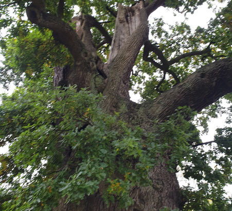 Story: the Coventry Standard 23/1/1943 says of this old tree: "it has suffered fairly extensively during its long life; in its crown there are several rents (one at least being caused by lightning), and there is an iron band around one of its upper limbs. Despite all this, the tree stiull flourishes.
